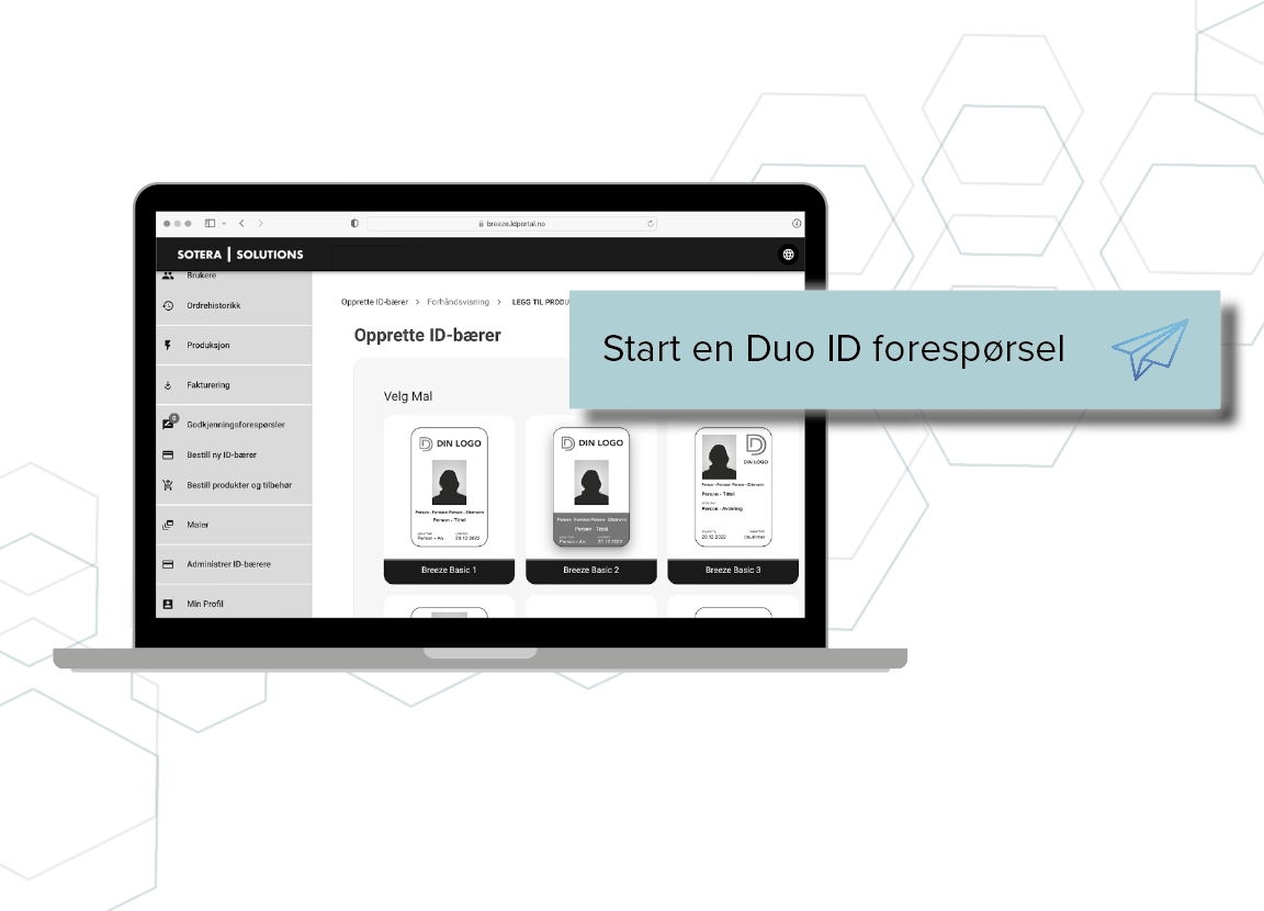 - Bidrar til en smidig bestillingsprosess: Med vår intuitive "Start en ny Duo ID-forespørsel" funksjon er opprettelsen av nye ID-bærere enklere.